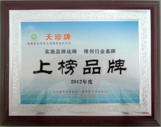 2012年5月“天珍牌”荣获中国食用菌商务网 食用菌编辑部 “2012年度 上榜品牌” |