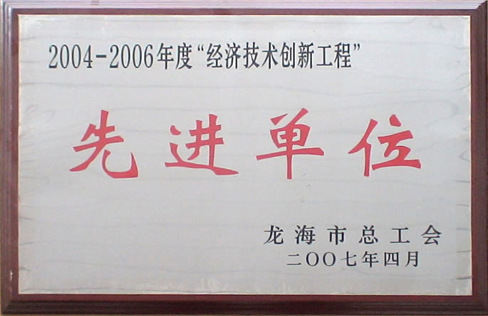 2007年4月 被龙海市总工会授予2004-2006年度"经济技术创新工程"先进单位 |